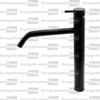 Waterevolution Flow wastafelkraan hoge uitloop voor waskommen incl. click plug mat zwart T115PR
