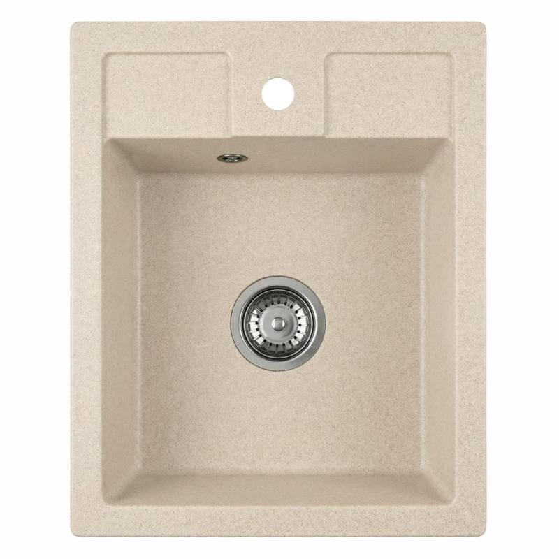 Graniteland Prest Granieten beige spoelbak Tapwing met kraangatbank opbouw 400x500mm met RVS Plug 1208971422