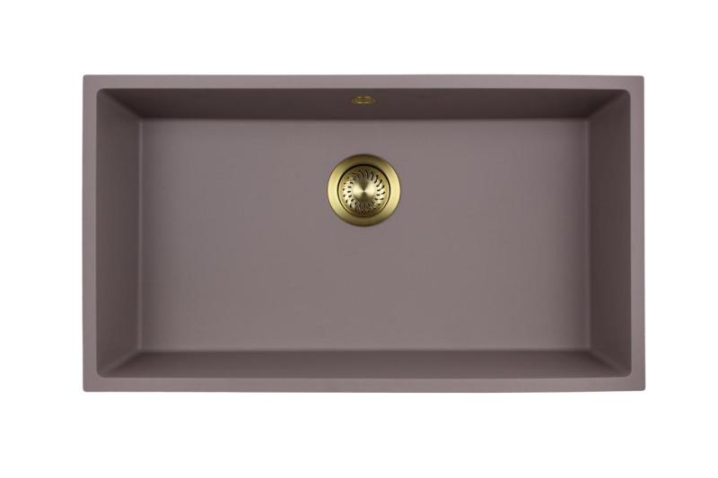 GraniteMy Universal granieten taupe grote spoelbak 74x40 cm opbouw, onderbouw en vlakinbouw met gouden plug 1208972707
