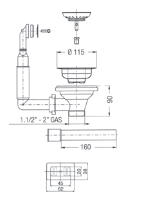 PB klassieke chromen afvoerset met overloop voor een keuken spoelbak en korfplug chroom afsluitbaar 1208956480