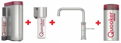 Quooker Classic Fusion Square RVS COMBI & CUBE Warm, koud, kokend, gefilterd, koud, bruisend water 22CFSRVS+CUBE