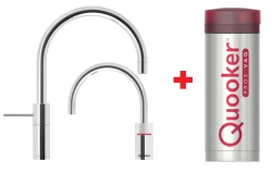Introductie van de Quooker Nordic Round Twintaps Chroom PRO3, de kraan die synoniem staat voor moeiteloze veelzijdigheid en een strak design.