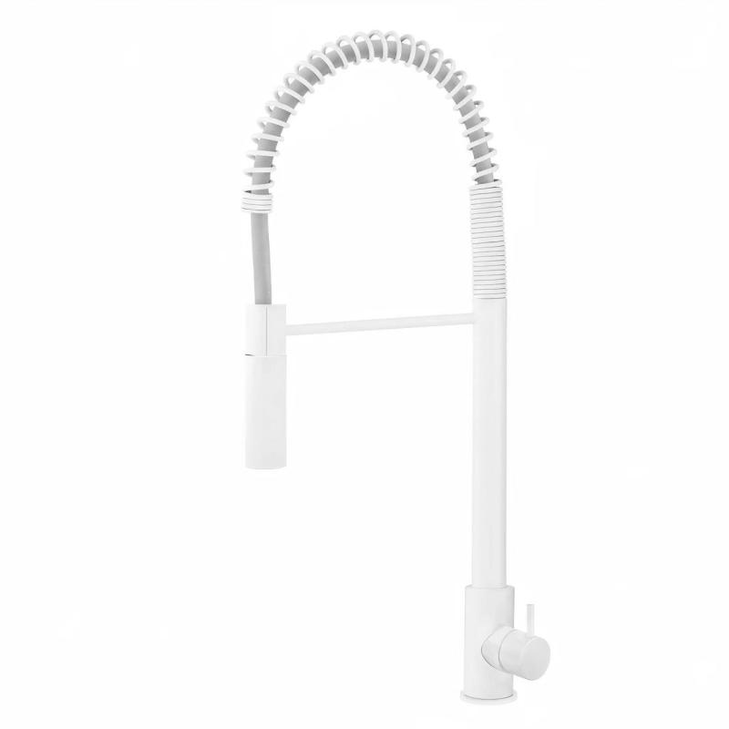 Waterevolution Flow semi-professionele keukenmengkraan mat wit met kolom en veer T157BR